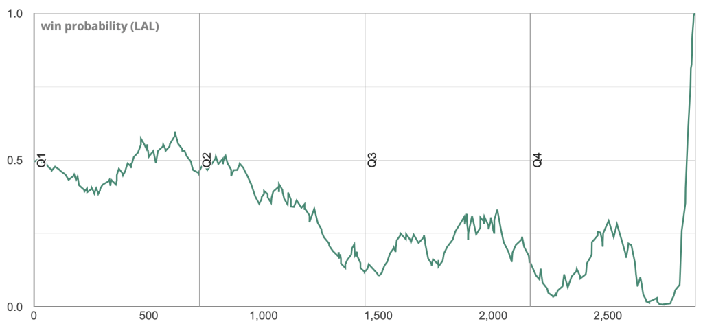 I recently developed a win probability model for the awesome py_ball package in Python. The package itself makes NBA/WNBA data accessible to a wide audience. If you haven’t seen it, you should definitely check it out. The link is https://github.com/basketballrelativity/py_ball.